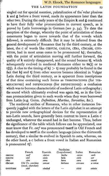| Lat. /k/ | It. /t͡ʃ/ | Fr. /s/ |